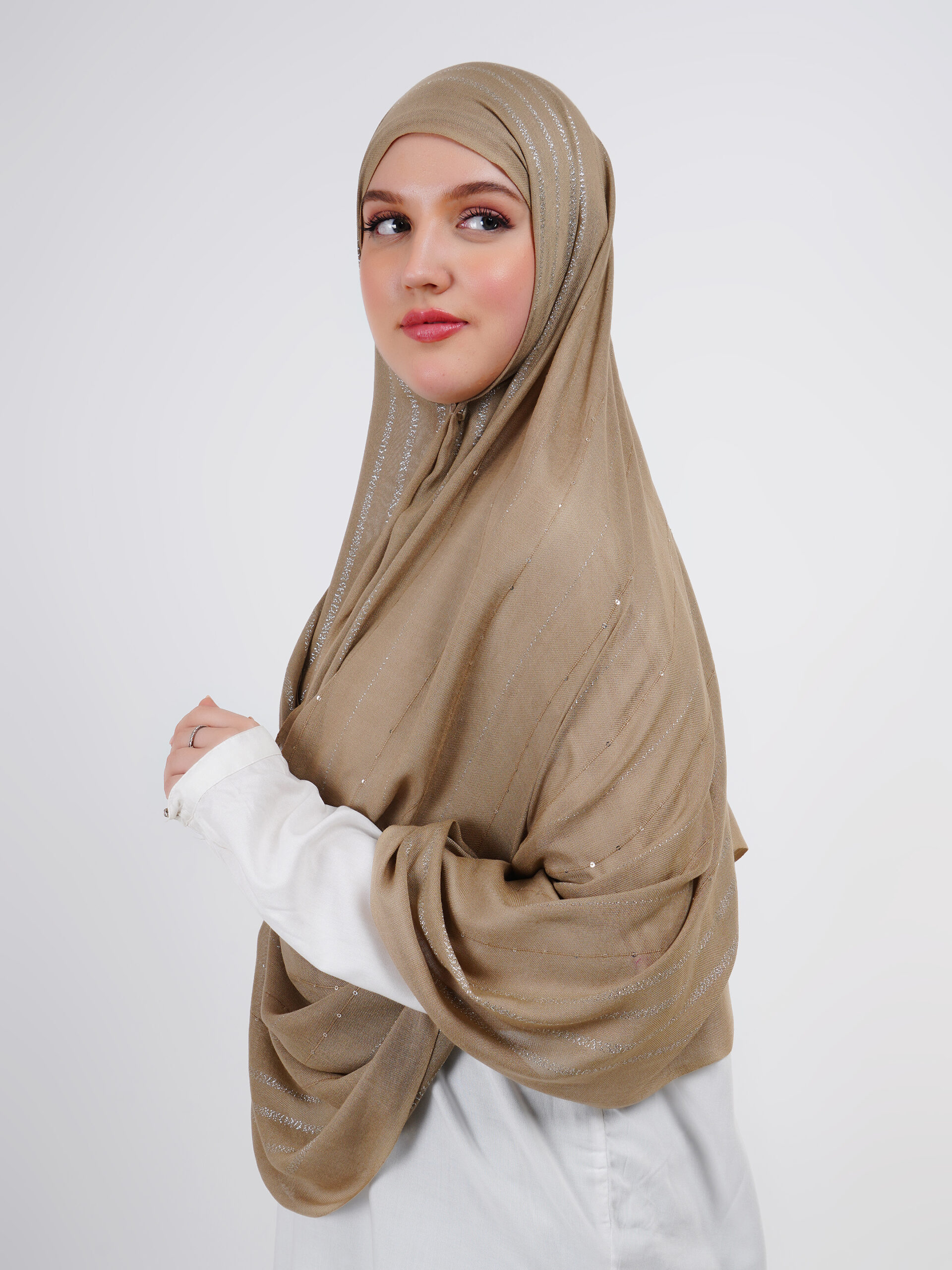 Lightweight modal scarves with a delicate shimmer, designed for breathable comfort and a graceful drape that adds refined elegance to any look.