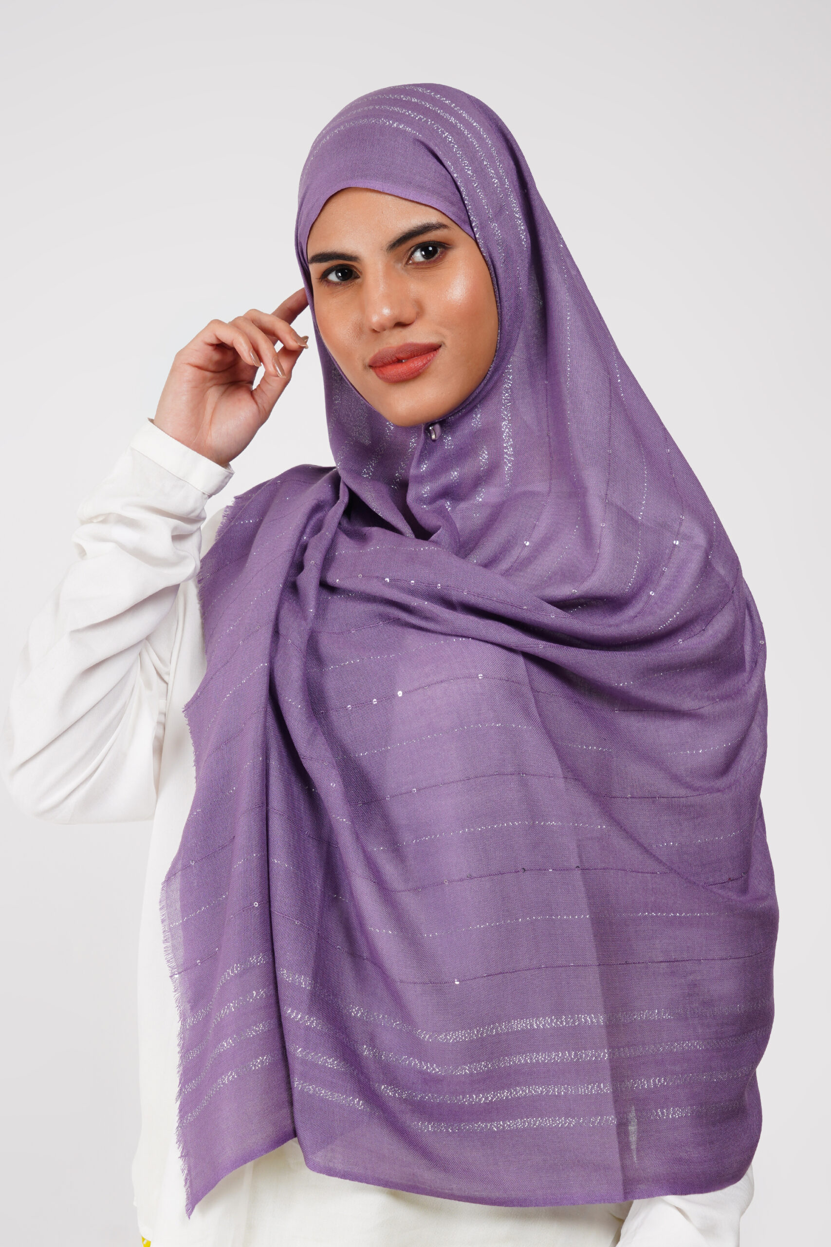 Lightweight modal scarves with a delicate shimmer, designed for breathable comfort and a graceful drape that adds refined elegance to any look.