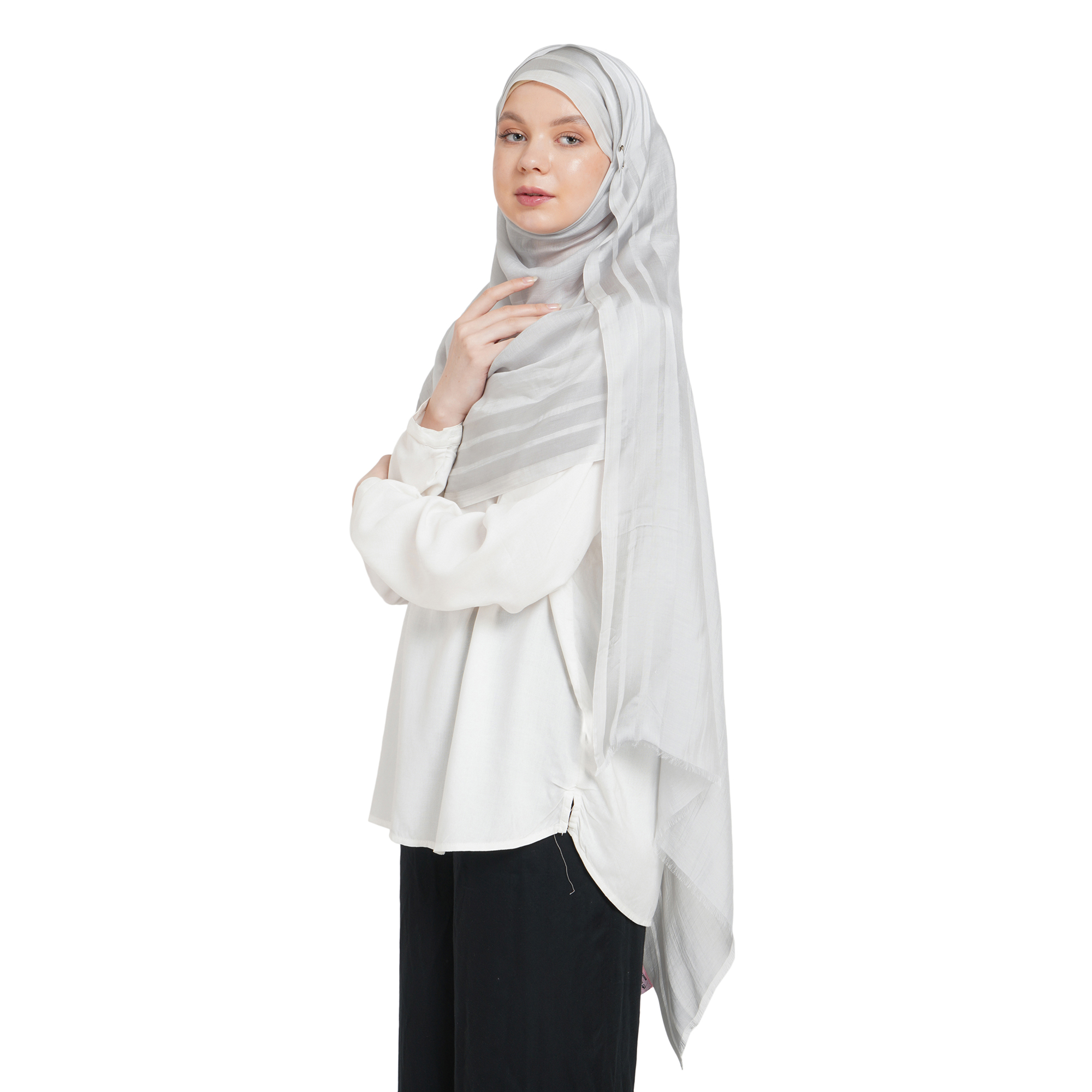 Description: Plain Silky Stripe Modal Hijab. Super Soft, Lightweight,